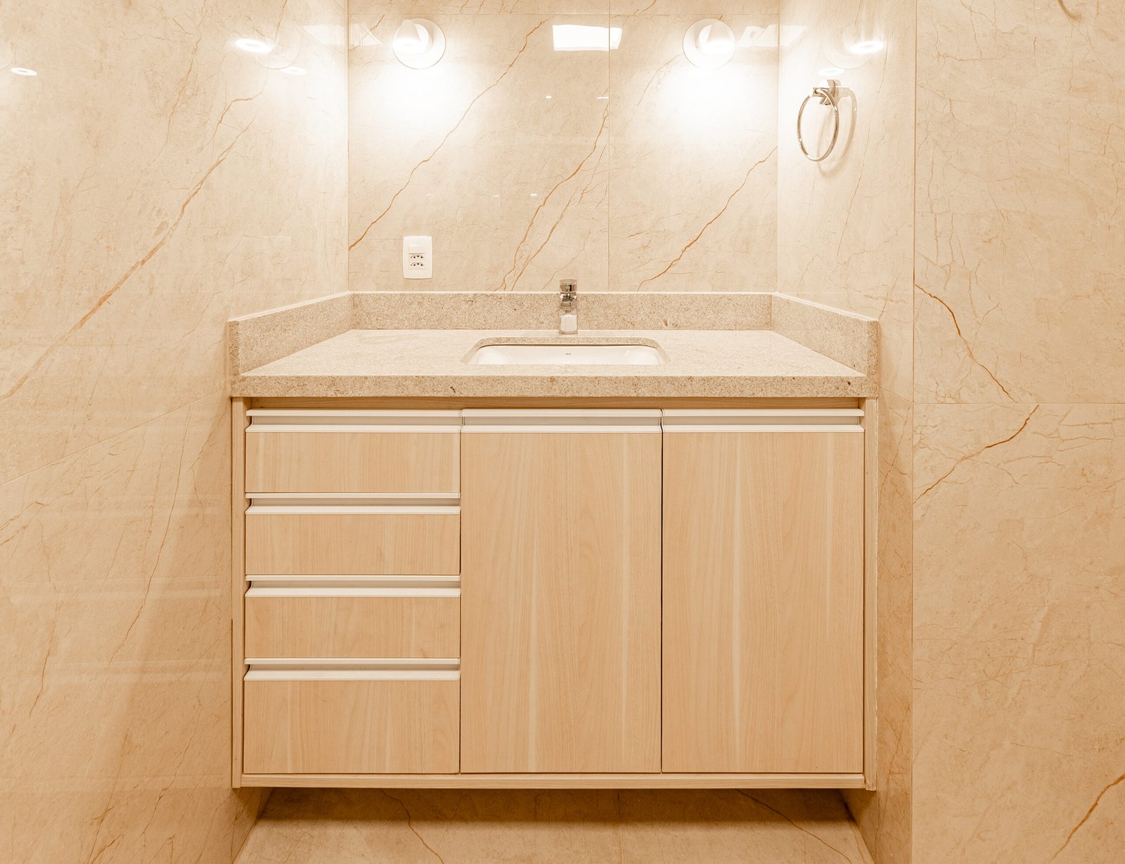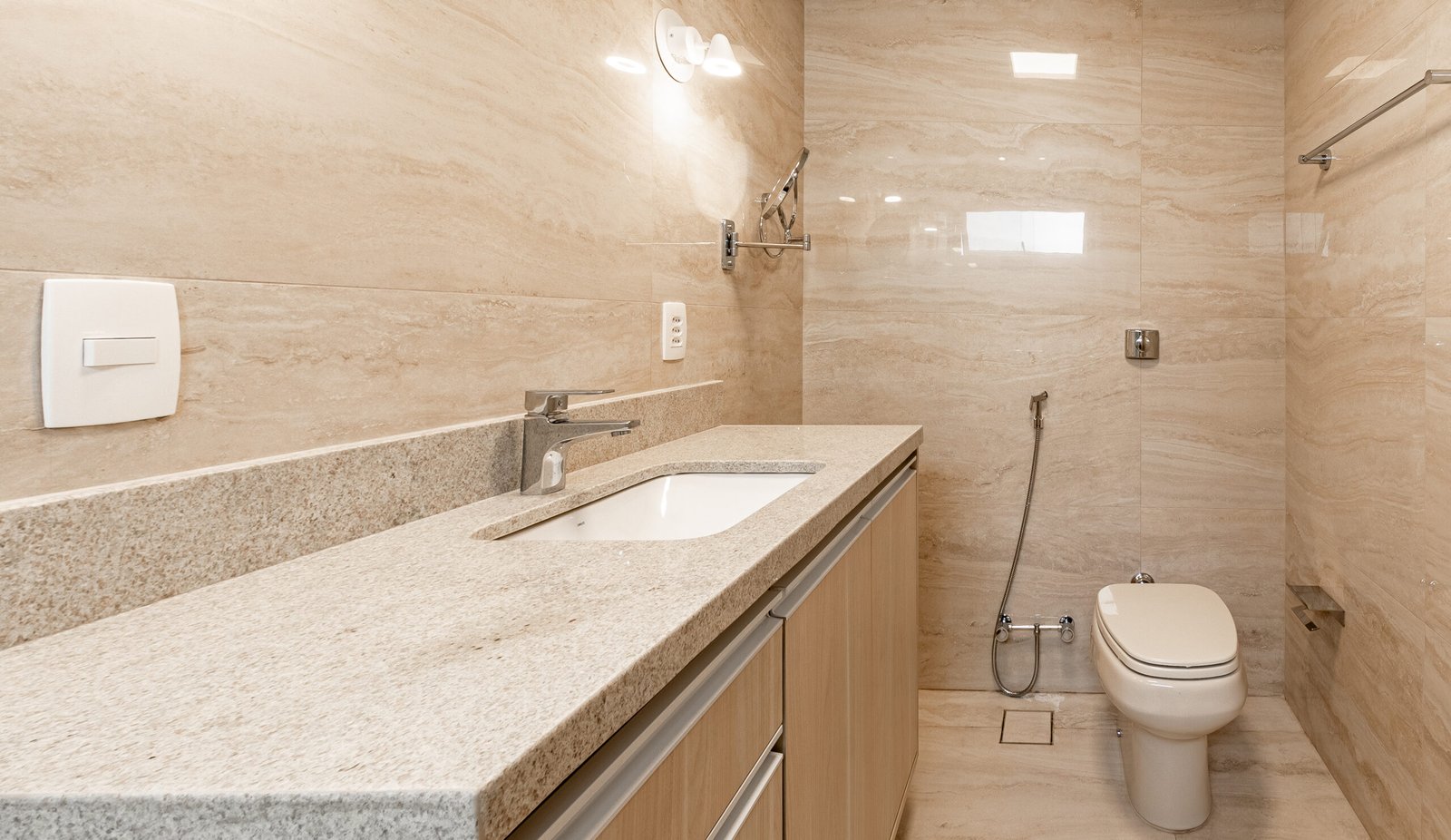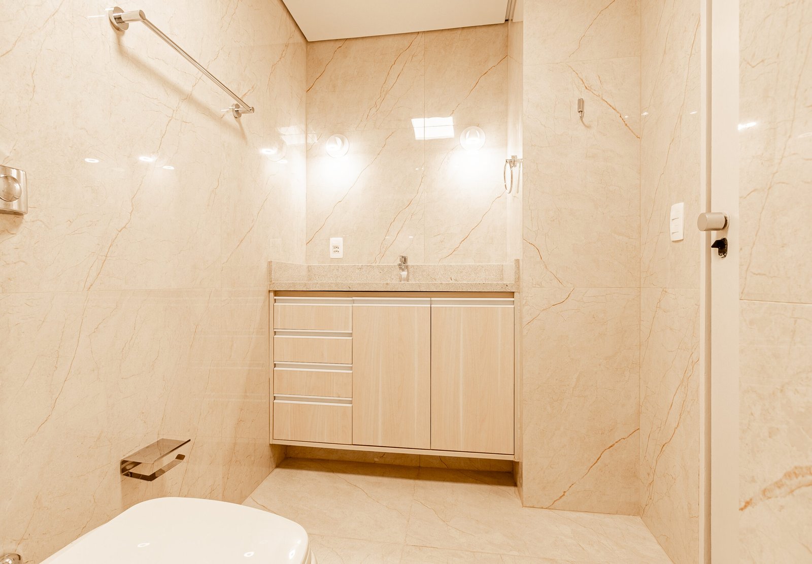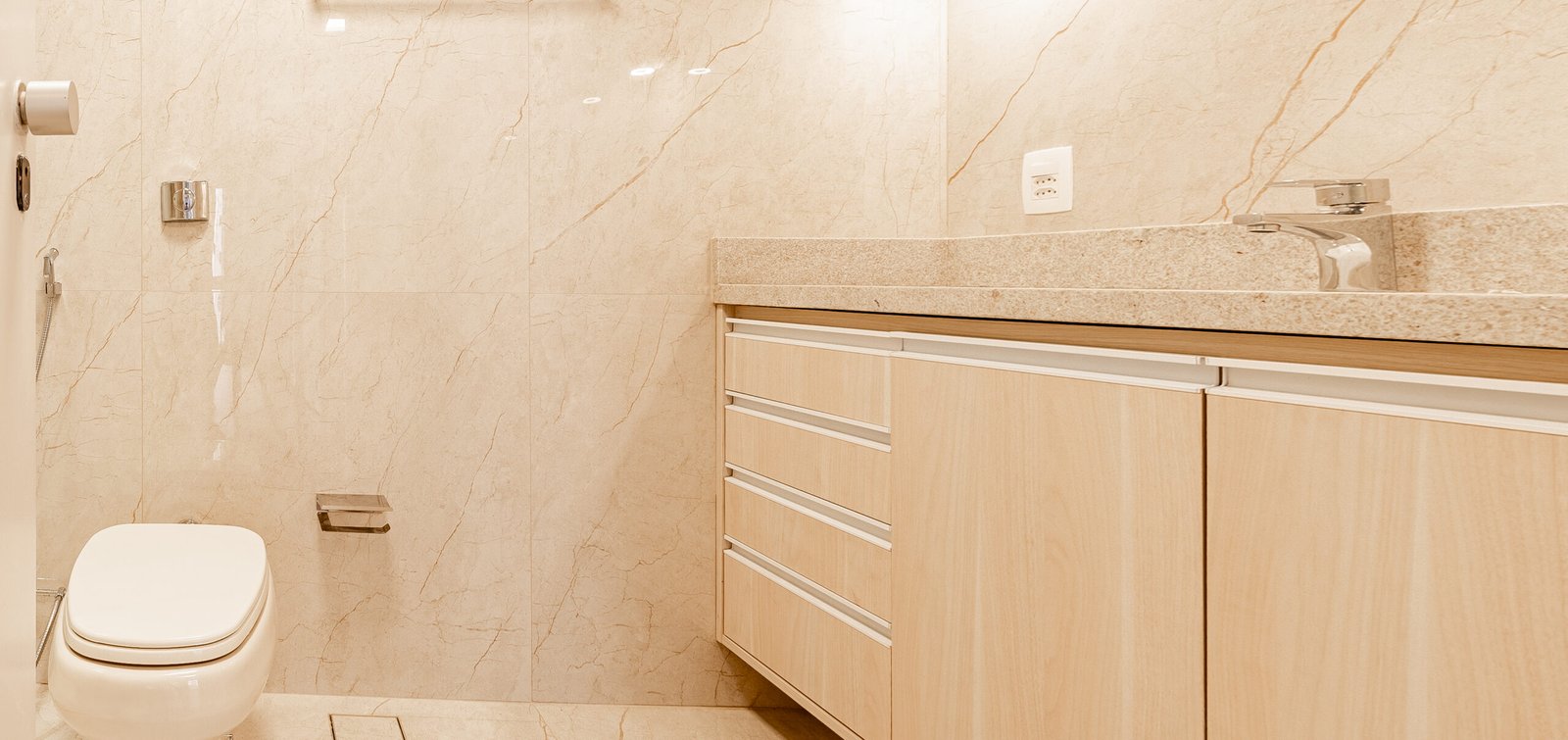 • instalação de novos porcelanatos e restauração total do banheiro, cozinha e área de serviço