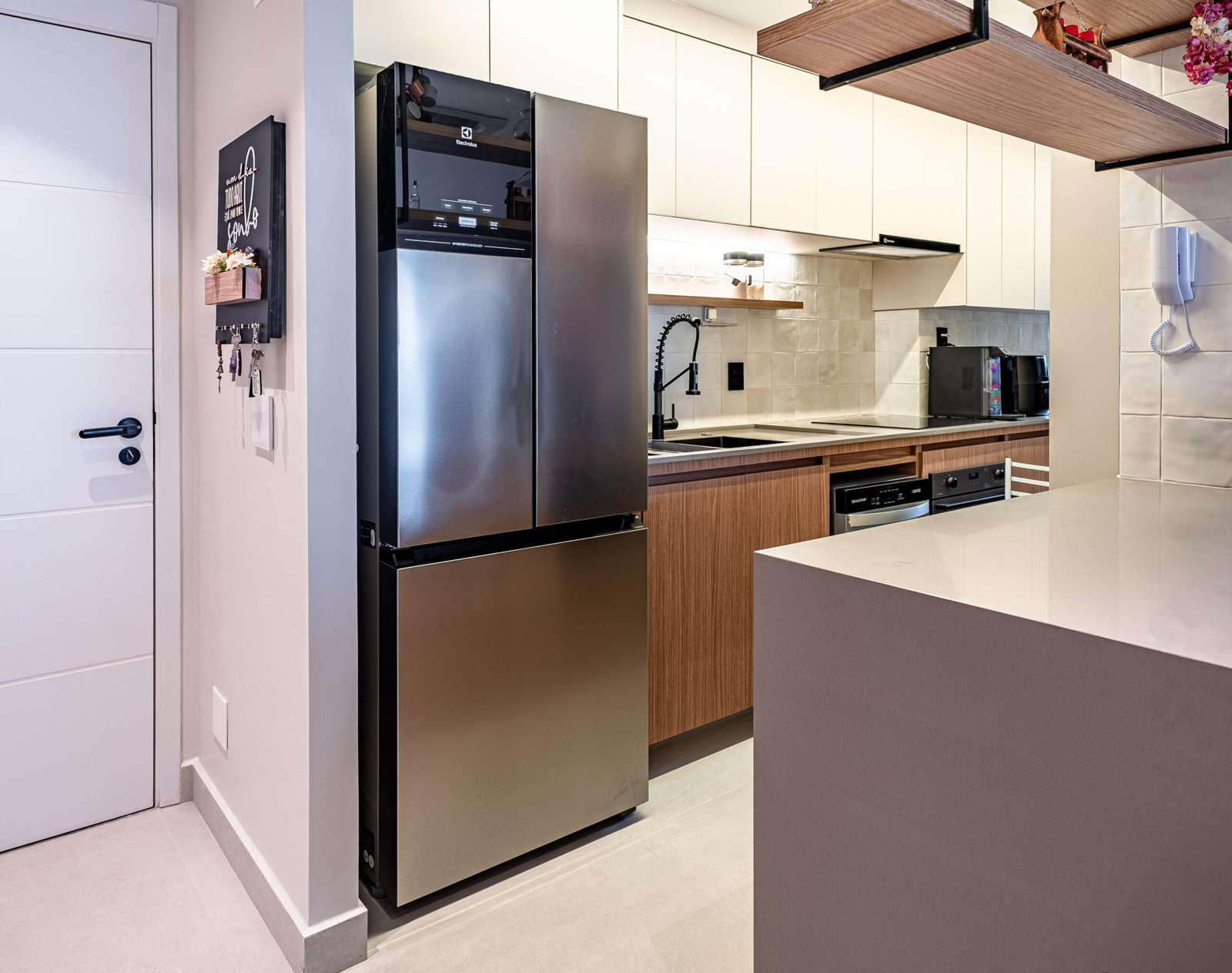 Por ser um apartamento recém entregue pela construtora, fizemos todas as adaptações necessárias para atender às novas demandas e o lindo projeto da arquiteta Bruna Paiva.